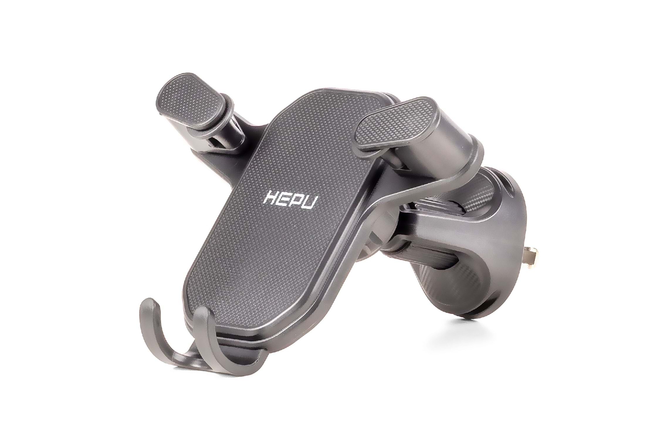 HEPU HP-A13, araç havalandırma ızgarasına sabitlenen pratik ve kompakt bir telefon tutucudur. Otomatik sıkıştırma mekanizması sayesinde telefon yerleştirildiğinde yan kollar kendiliğinden kapanarak cihazı güvenli şekilde sabitler.