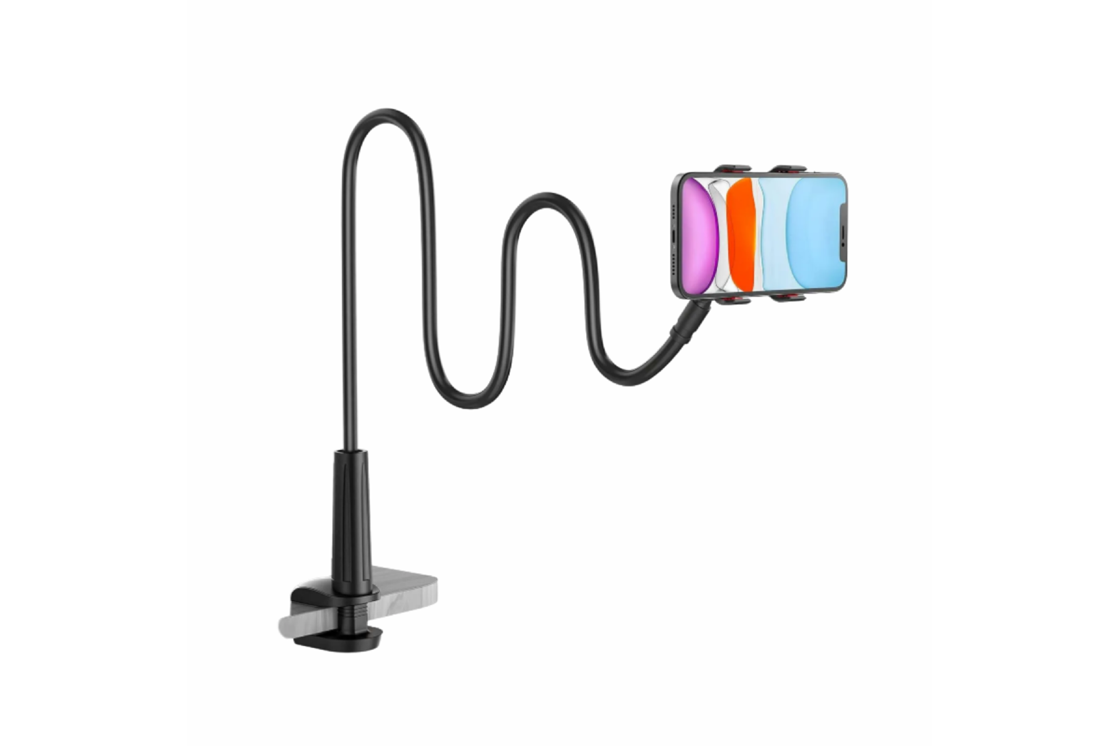 Uzun ve esnek kol yapısı, telefonunuzu göz hizasına getirerek konforlu bir kullanım sunar. Ev, ofis ve içerik üretim ortamlarında pratik bir telefon standı olarak kullanılabilir.