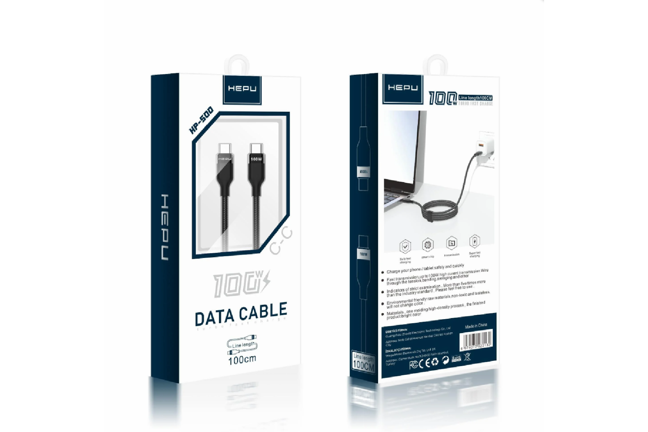 HEPU HP-500 Type-C to Type-C Kablo, 100W’a kadar güç iletimini destekleyen yüksek performanslı bir şarj ve veri kablosudur. MacBook, tablet, akıllı telefon ve diğer Type-C uyumlu cihazlarla tam uyumludur. Kalın ve dayanıklı örgü dış kaplaması sayesinde uzun ömürlü kullanım sunar. 1 metrelik ideal uzunluğu ile masa başında ve seyahatlerde konforlu kullanım sağlar
