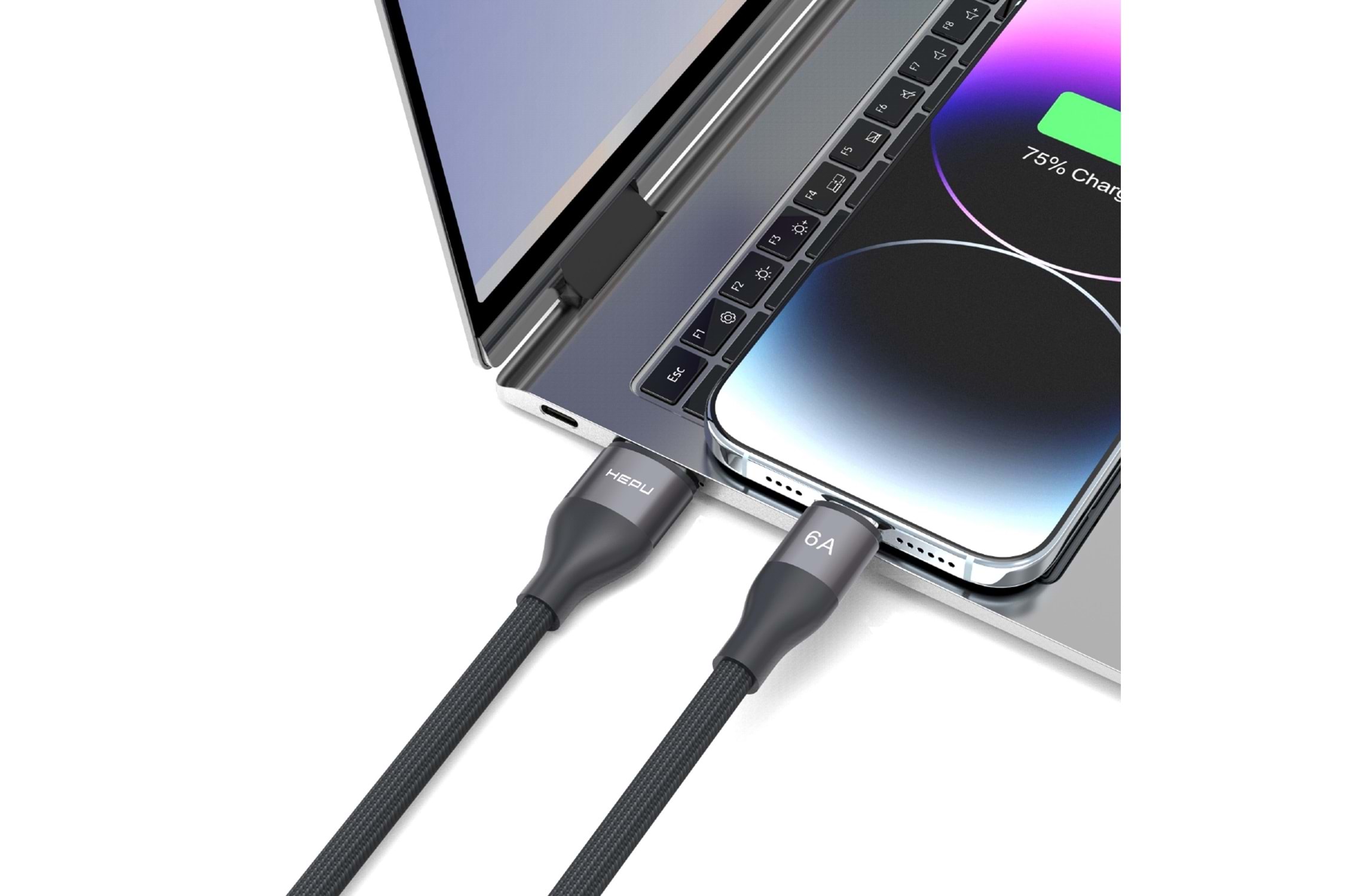 HEPU HP-503 Type-C to Type-C Kablo, 6A akım desteğiyle hızlı şarj ve güvenli veri aktarımı sunan dayanıklı bir şarj kablosudur. Örgülü dış yüzeyi sayesinde bükülmelere ve dış etkilere karşı ekstra koruma sağlar. Günlük kullanımda uzun ömür ve konfor sunacak şekilde tasarlanmıştır