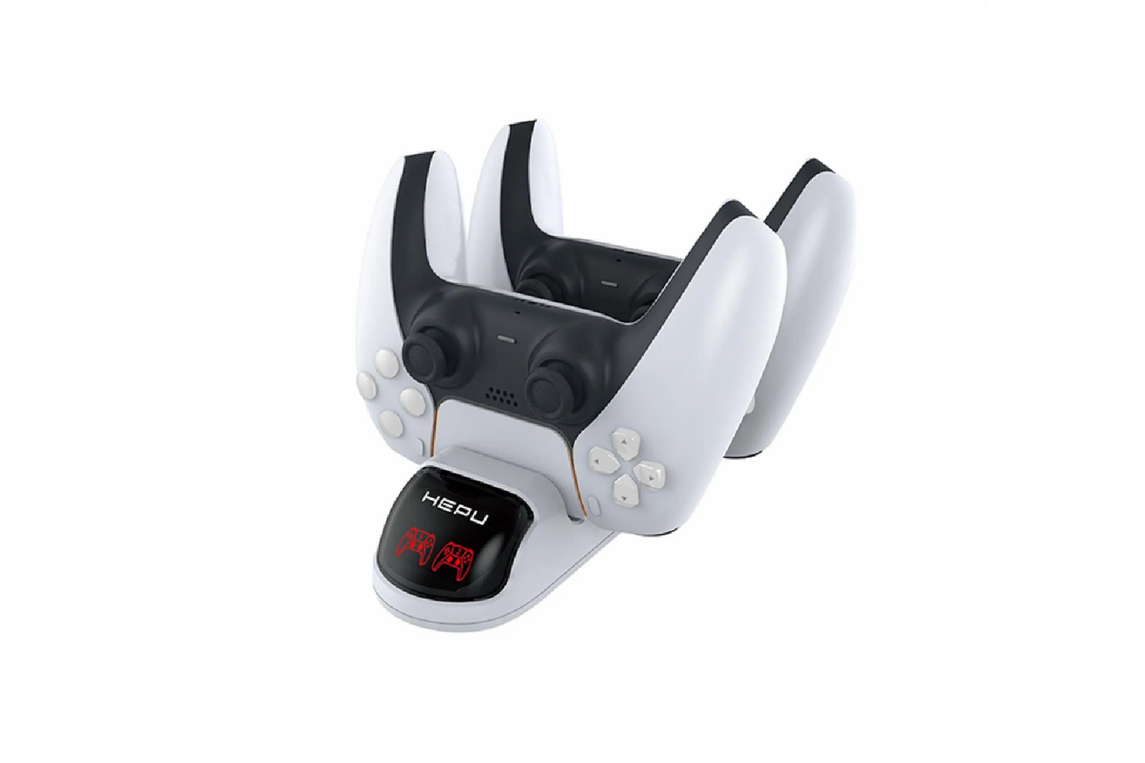 HEPU TP5-0506B, PlayStation 5 DualSense gamepad’ler için tasarlanmış, hızlı şarj destekli ve LED dijital ekranlı fonksiyonel bir şarj istasyonudur. Aynı anda iki kontrolcüyü güvenli şekilde şarj edebilir. Ön kısmında yer alan dijital ekran sayesinde şarj durumu anlık olarak takip edilebilir. Kompakt yapısı ile masaüstü düzenini korurken şık ve teknolojik bir görünüm sunar