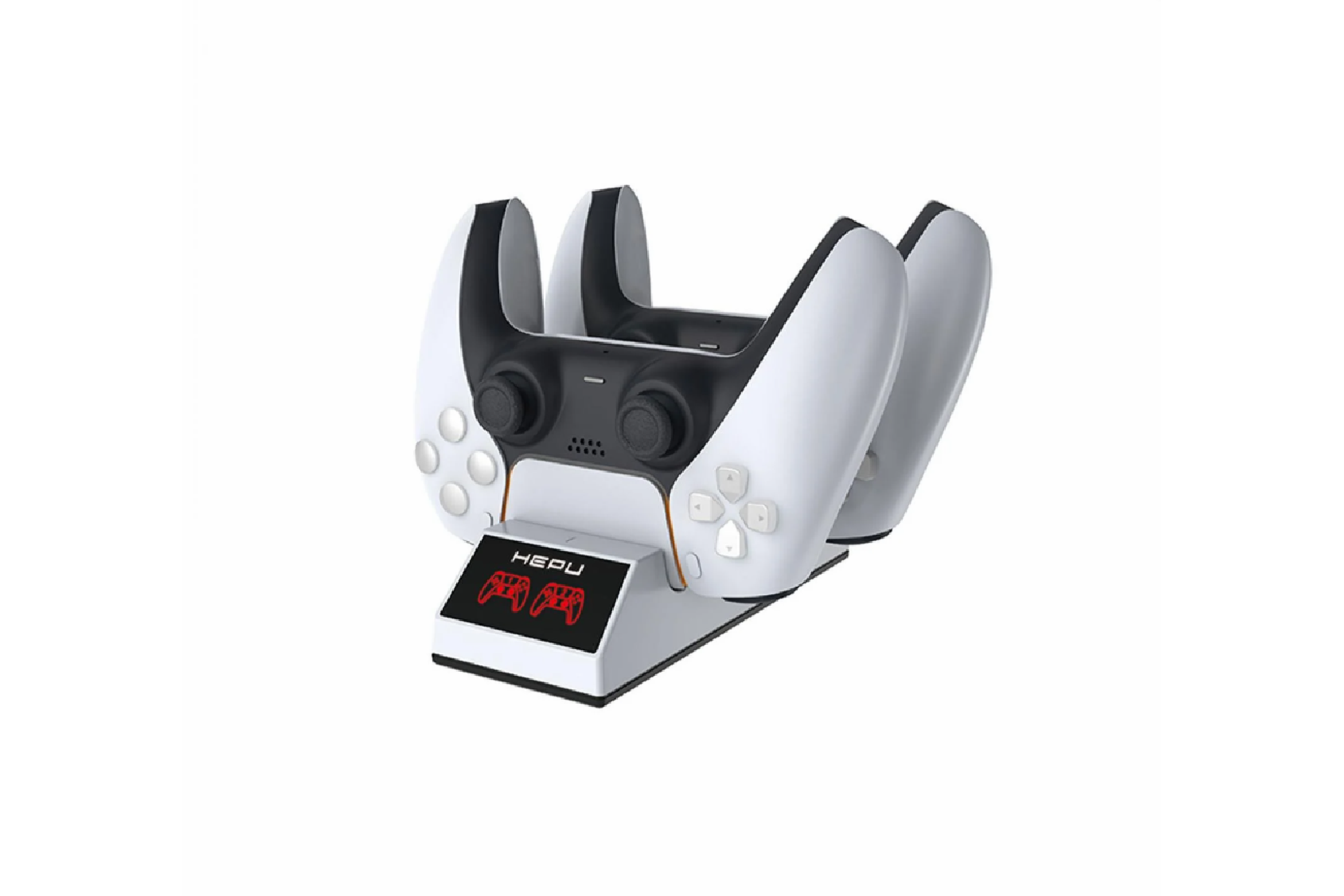 HEPU TP5-0508B, PlayStation 5 DualSense kontrolcüler için tasarlanmış kompakt ve şık bir çiftli şarj istasyonudur. Aynı anda iki gamepad’i güvenli şekilde şarj etmenizi sağlar. Ön kısmında yer alan dijital LED ekran sayesinde her bir kontrolcünün şarj durumu anlık olarak takip edilebilir. Type-C bağlantısı ile hızlı ve stabil şarj sunarken oyun alanınızda düzenli ve estetik bir görünüm oluşturur