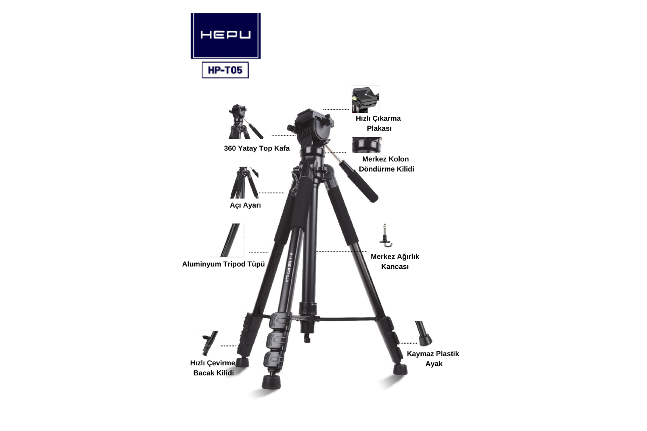 1- 1 adet HEPU HP-T05 Tripod